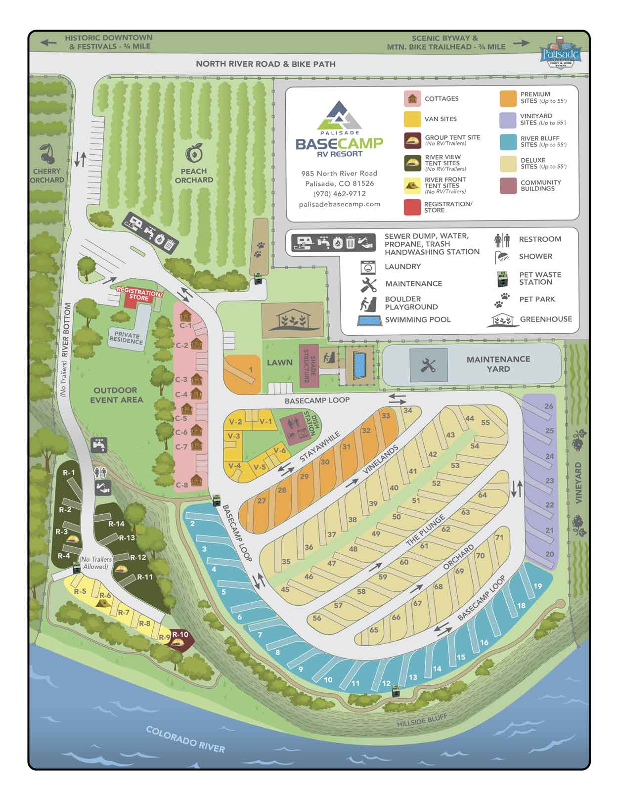 Palisade Basecamp RV Resort, your premier camping destination offers Cabins, RV Sites, and Riverside Tent Camping. Nestled between fruit orchards and wine vineyards along the river in picturesque Palisade, Colorado.